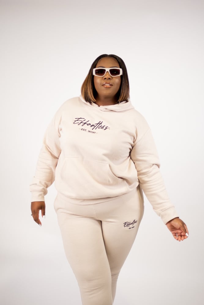 Soft. Comfortable. Cozy. The Hoodie and Joggers are made from good quality fabric. Standard fit with stretch that brings the comfort to help you move effortlessly. Fit: True to Size -cotton and polyester material